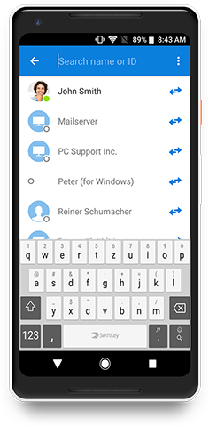 Usted pide. Nosotros escuchamos. Ahora puede acceder a sus dispositivos y contactos gestionados más rápido que nunca desde un dispositivo Android. Búsqueda de ordenadores o contactos dentro de la lista de ordenadores y contactos de la aplicación de control remoto para Android. Mejore la productividad de su equipo y ahorre tiempo navegando por la lista con esta nueva funcionalidad exclusiva.