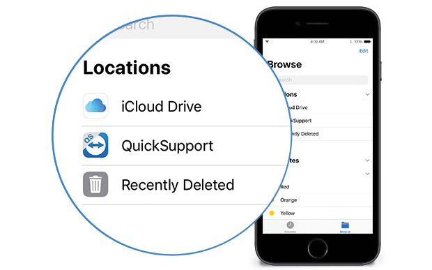 Servicio técnico mejorado con la reducción del tiempo de resolución de las cuestiones de asistencia técnica para iOS11 con TeamViewer; la primera solución de soporte remoto en integrarse con la nueva aplicación Archivos de iOS.
